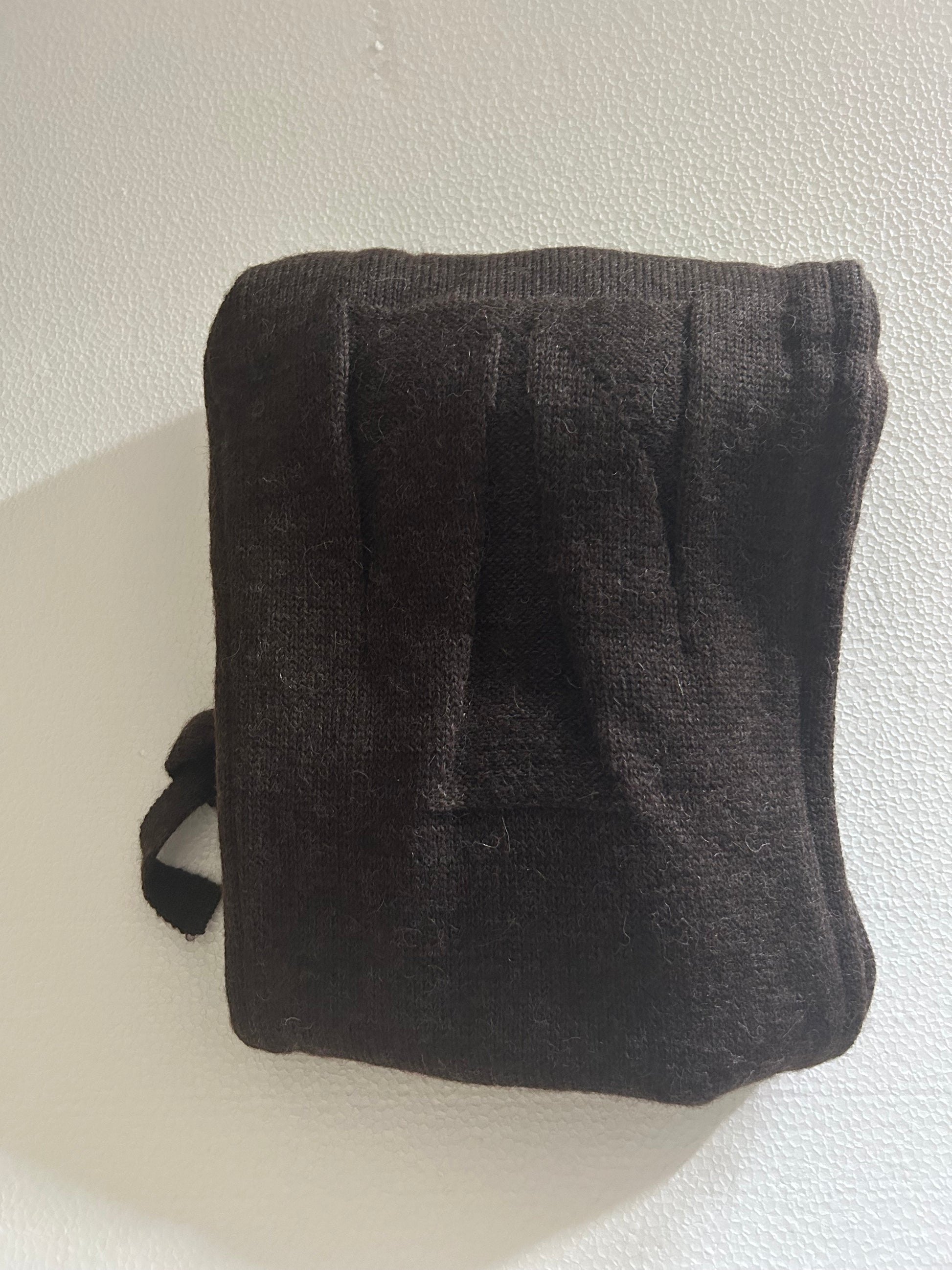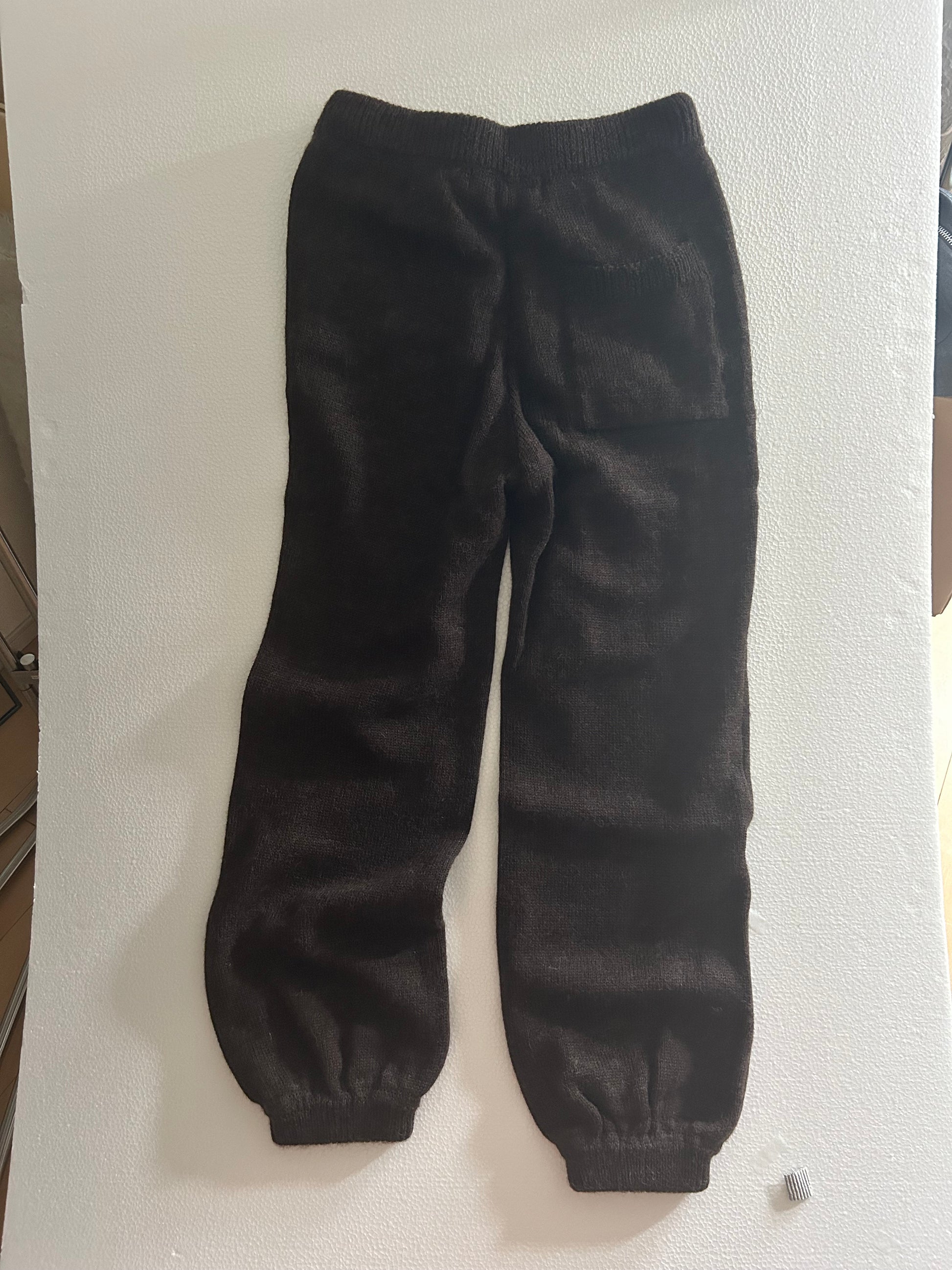 アワードセーターやレタードセーターのイメージで、ブランドロゴの“T“をあまり目立たない同色糸のリンクス柄が膝あたりにあります。裾がゴムで絞られているのでスニーカーやブーツでも合わせられます。